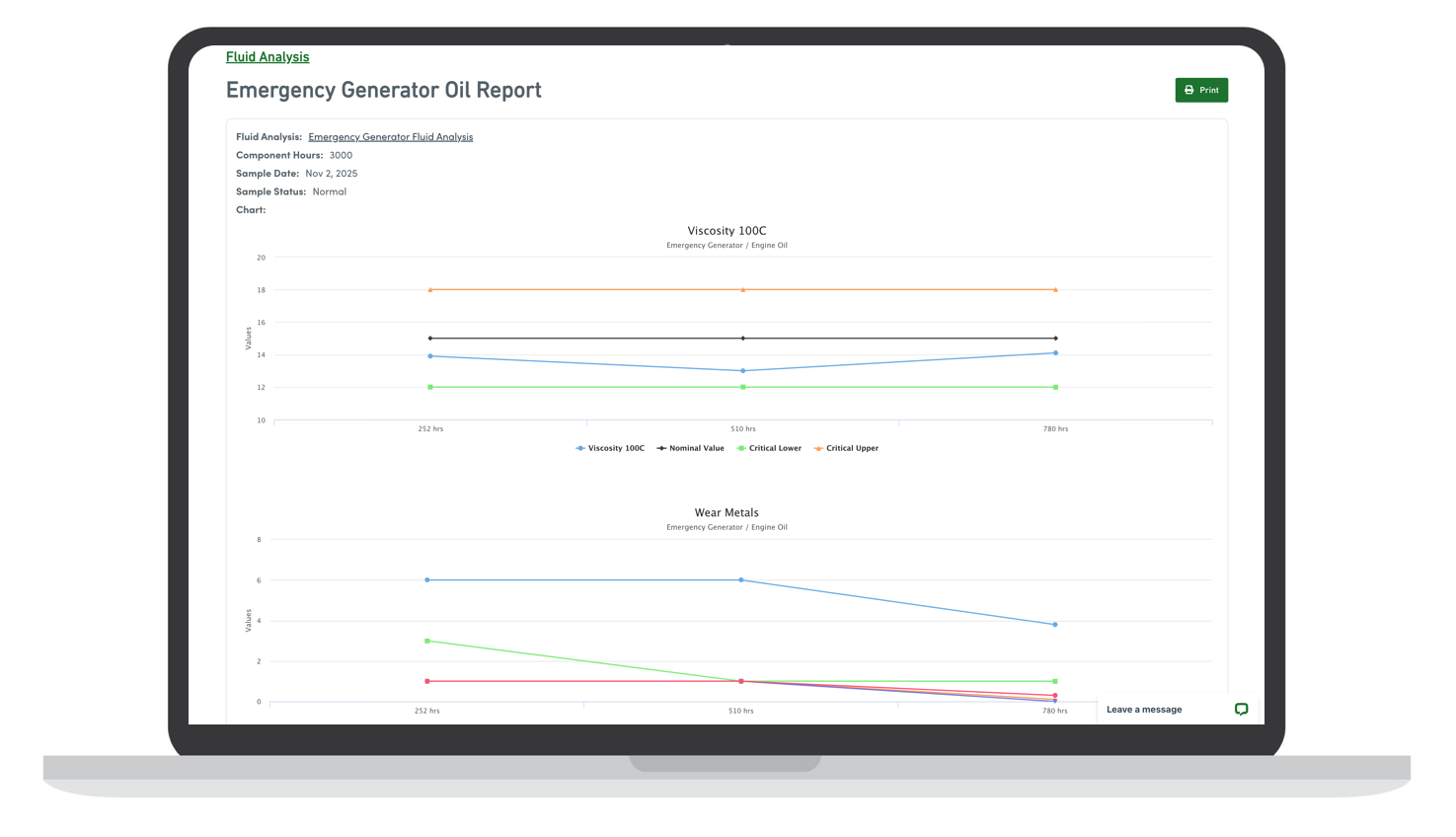 Fluid Analysis has made tracking and trending our regular fluid sample results. The charting feature provides a snapshot of how are assets are tracking and their condition.