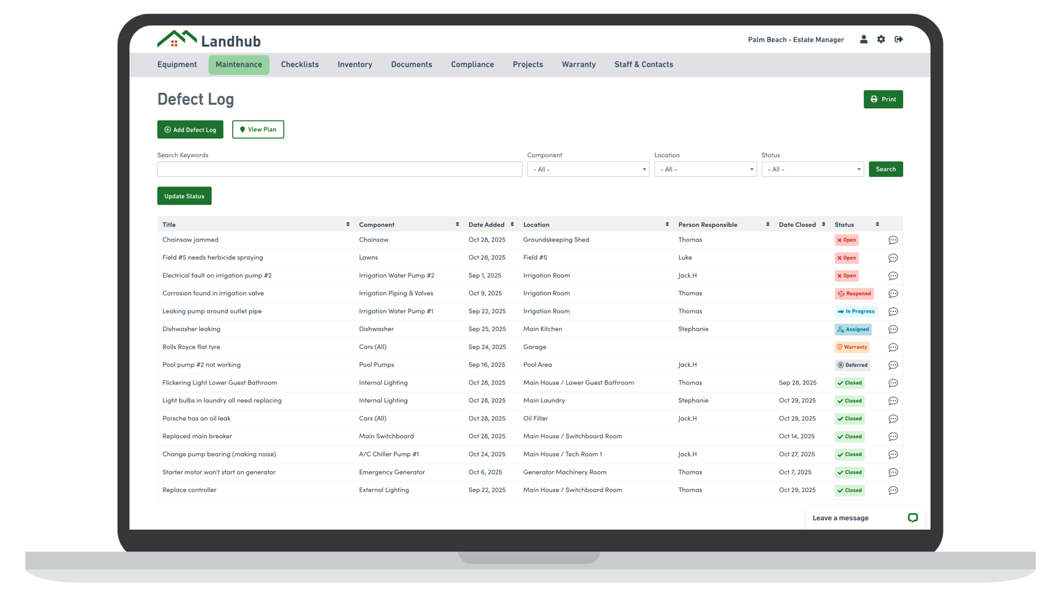 Landhub has given us a system to follow and a framework to work off which has completely removed the guess work out of knowing what maintenance is needed