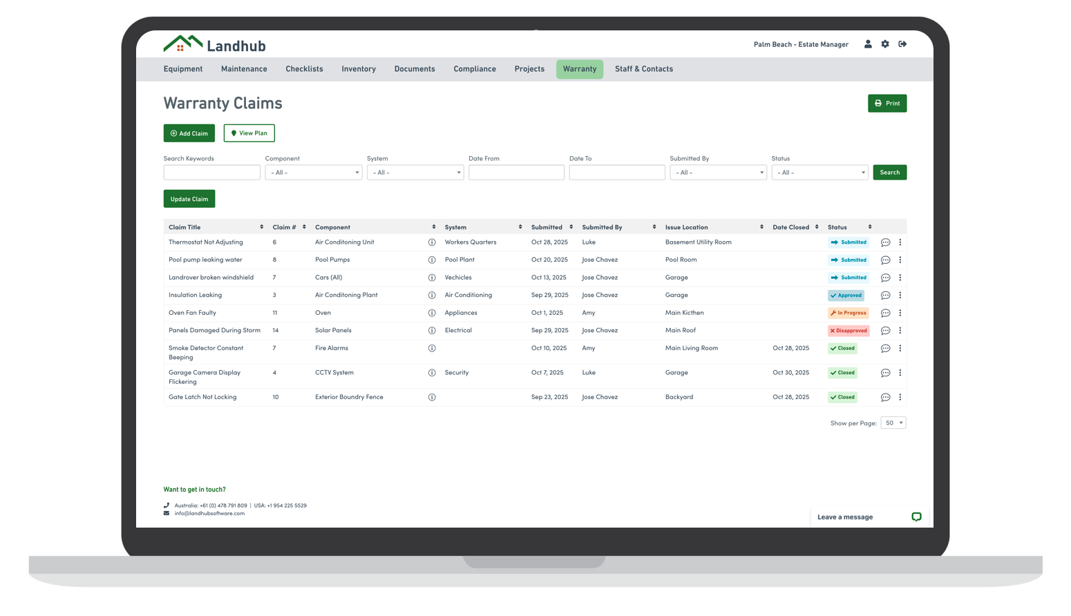 Benefits of managing warranty claims in Landhub