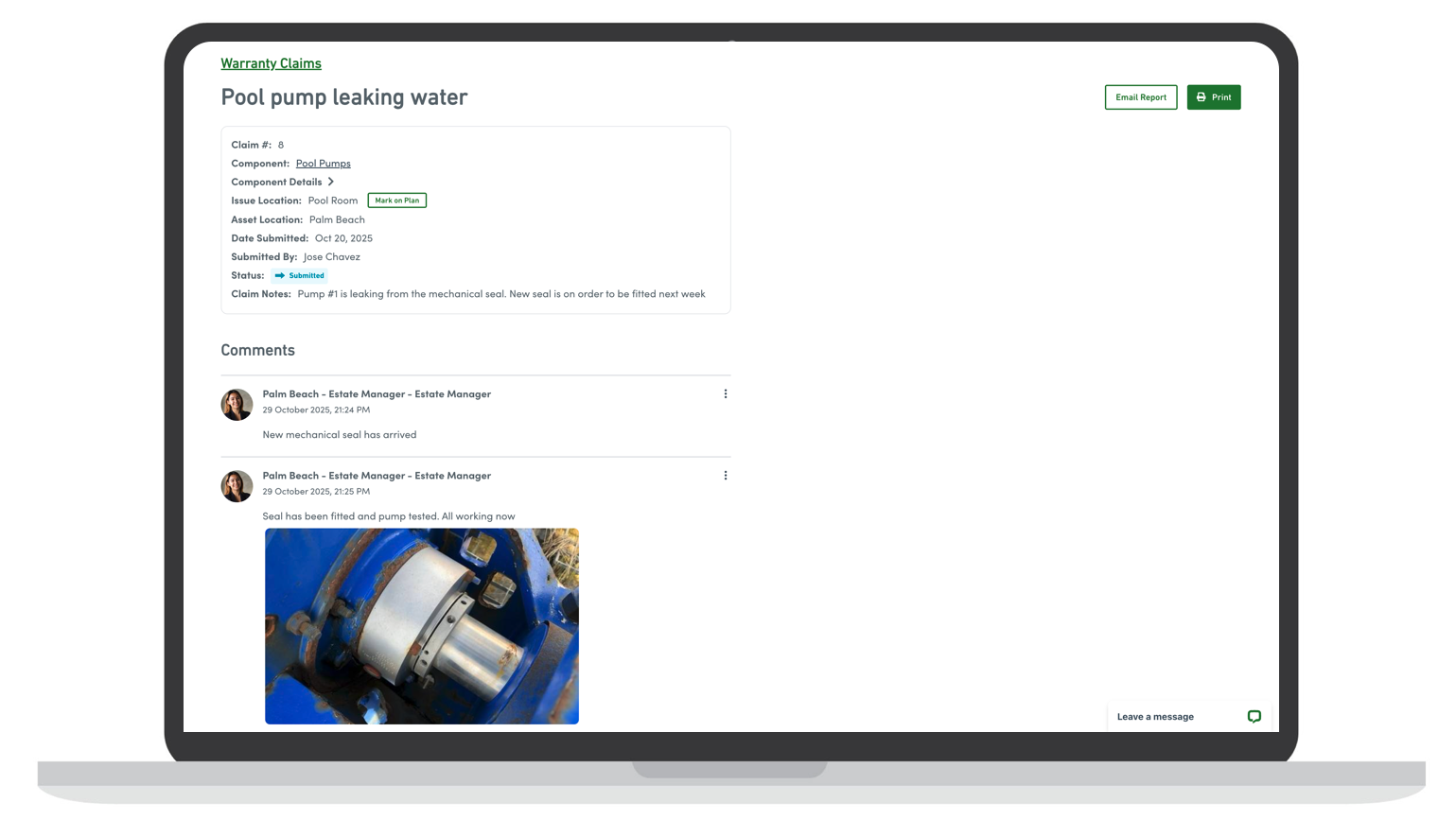 Manage component specific warranty periods for critical and non-critical equipment. Quickly review which equipment is still in warranty while having access to all warranty claim information including correspondence, images and service reports. An ideal tool for a new construction project wanting to stay on top of property maintenance!
