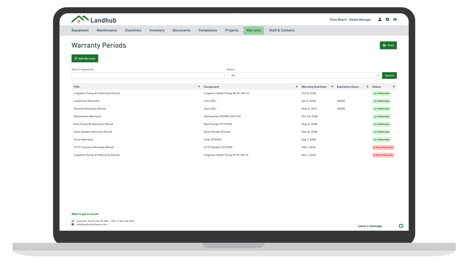 Protect investments by managing warranties with automated reminders and claim tracking. Estate managers can easily identify which equipment and assets are under warranty, preventing unnecessary repair or replacement costs. Centralised warranty data saves time and reduces financial risk.